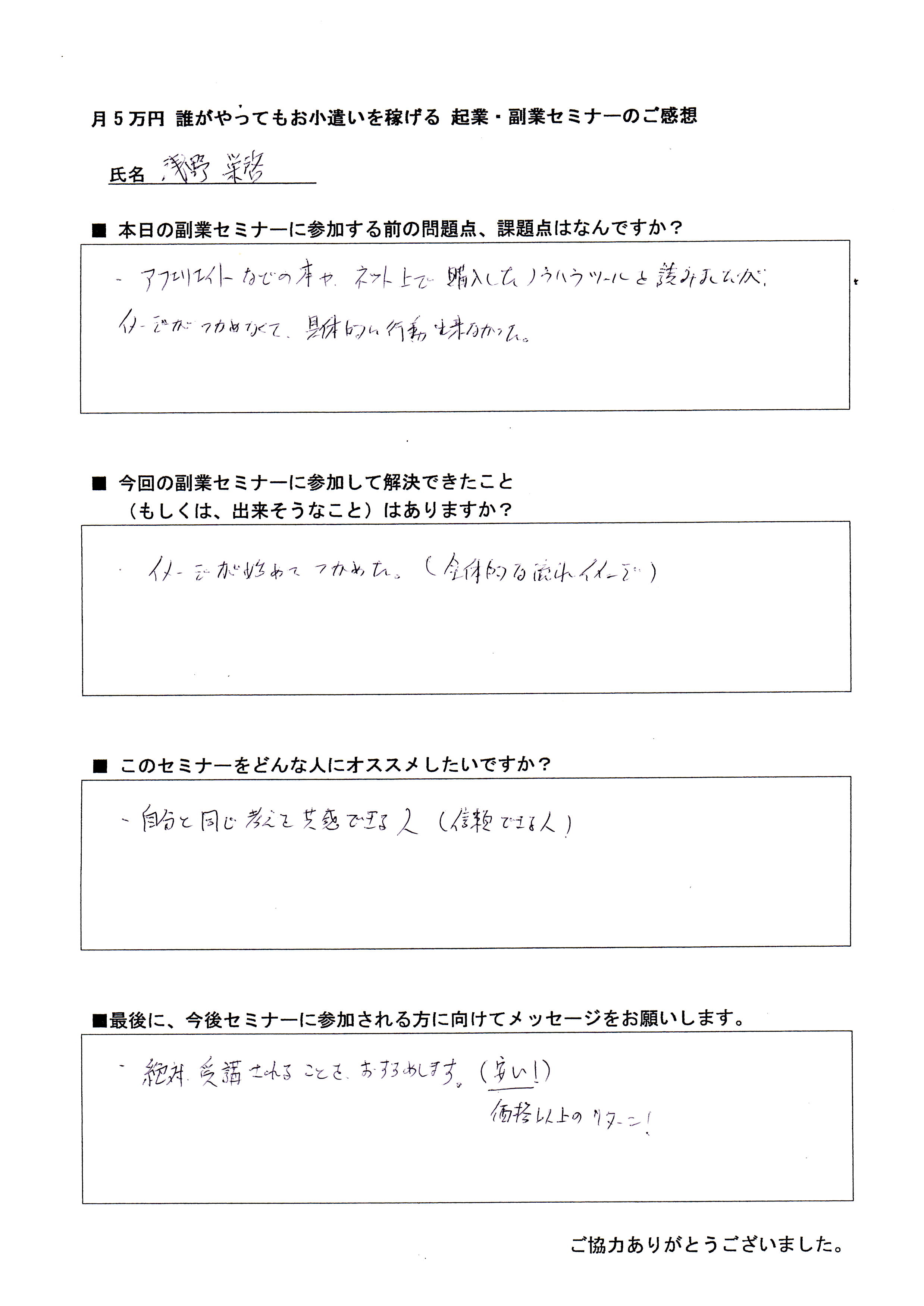 セミナー参加者のご感想 起業副業 セミナー 名古屋 輸入 物販 BUYMA バイマ 休日